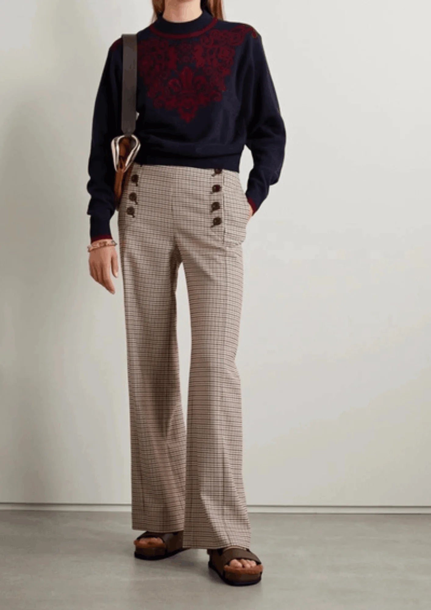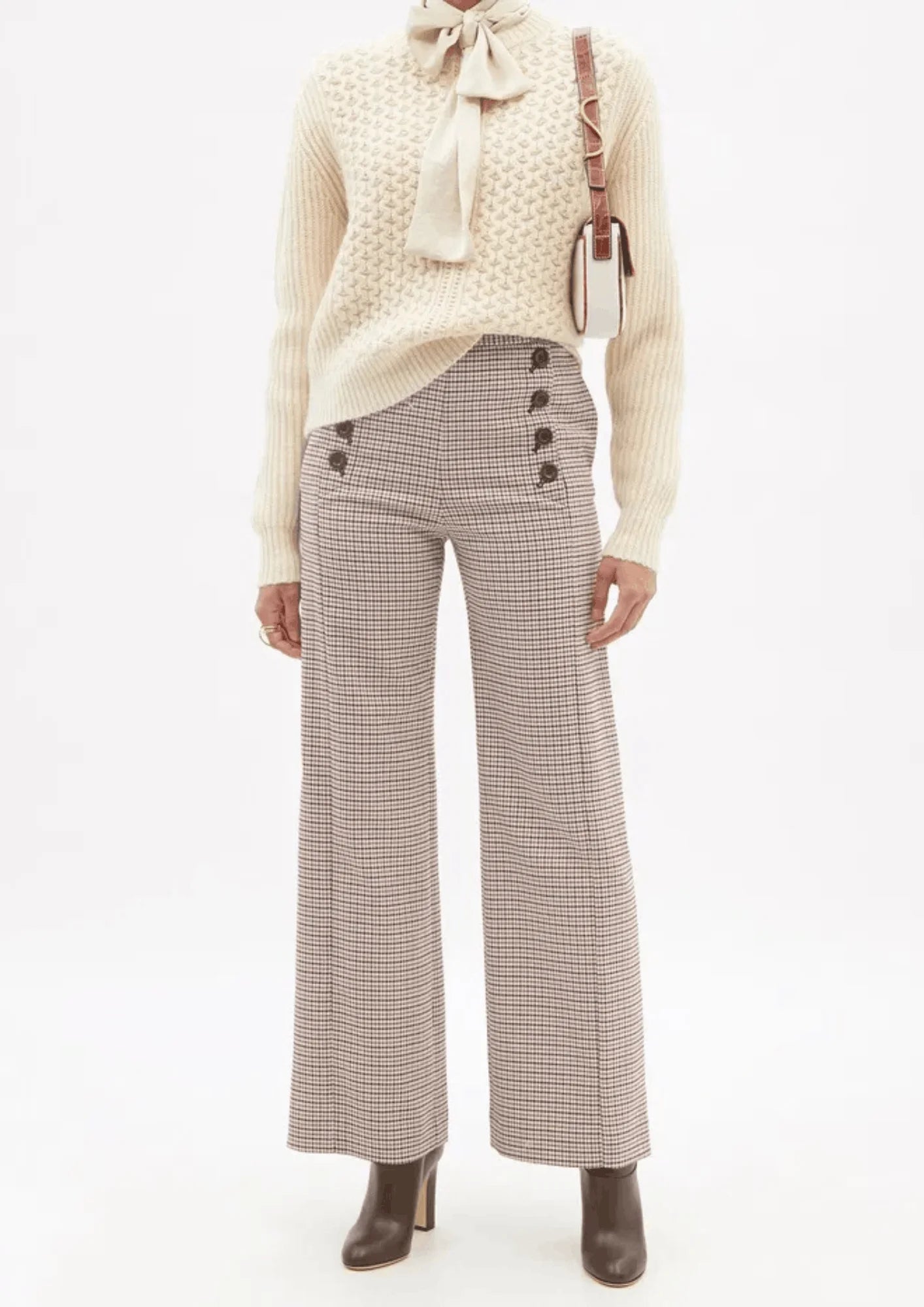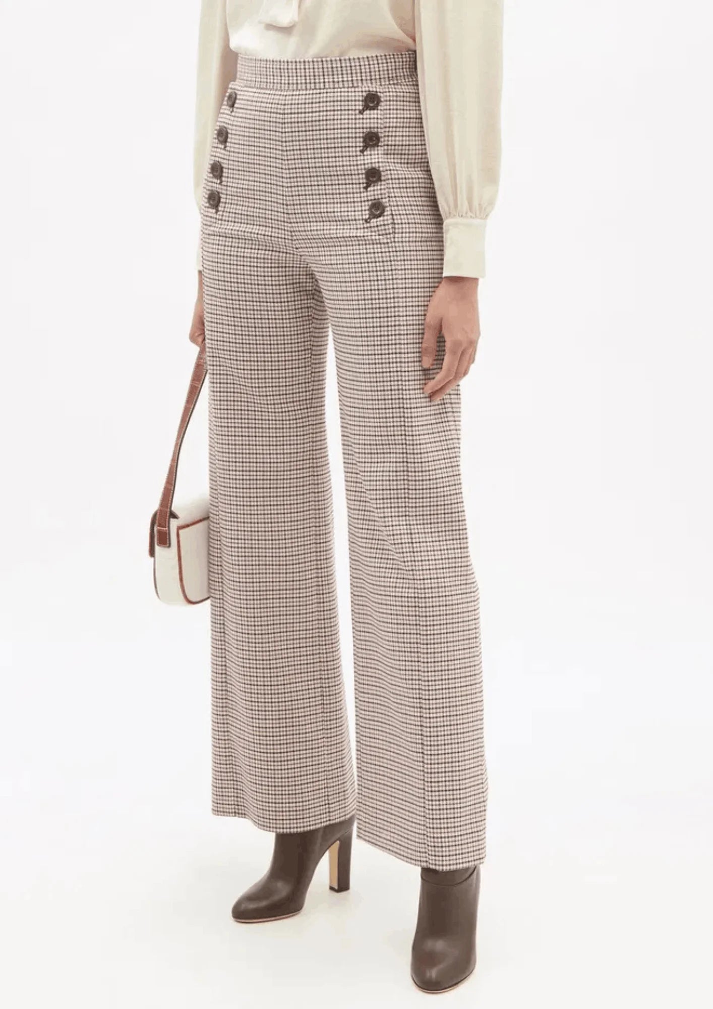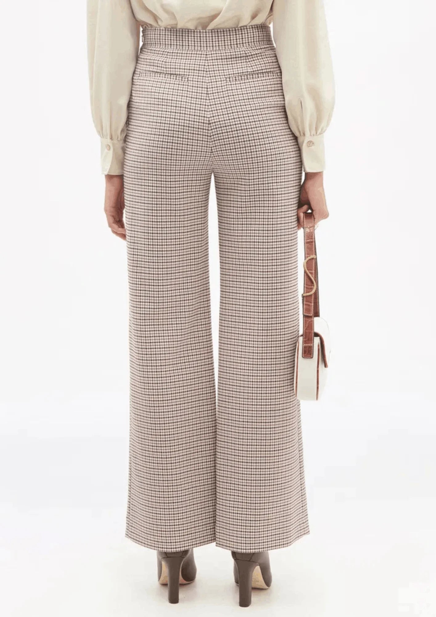 CHECKED WIDE-LEG TROUSERS