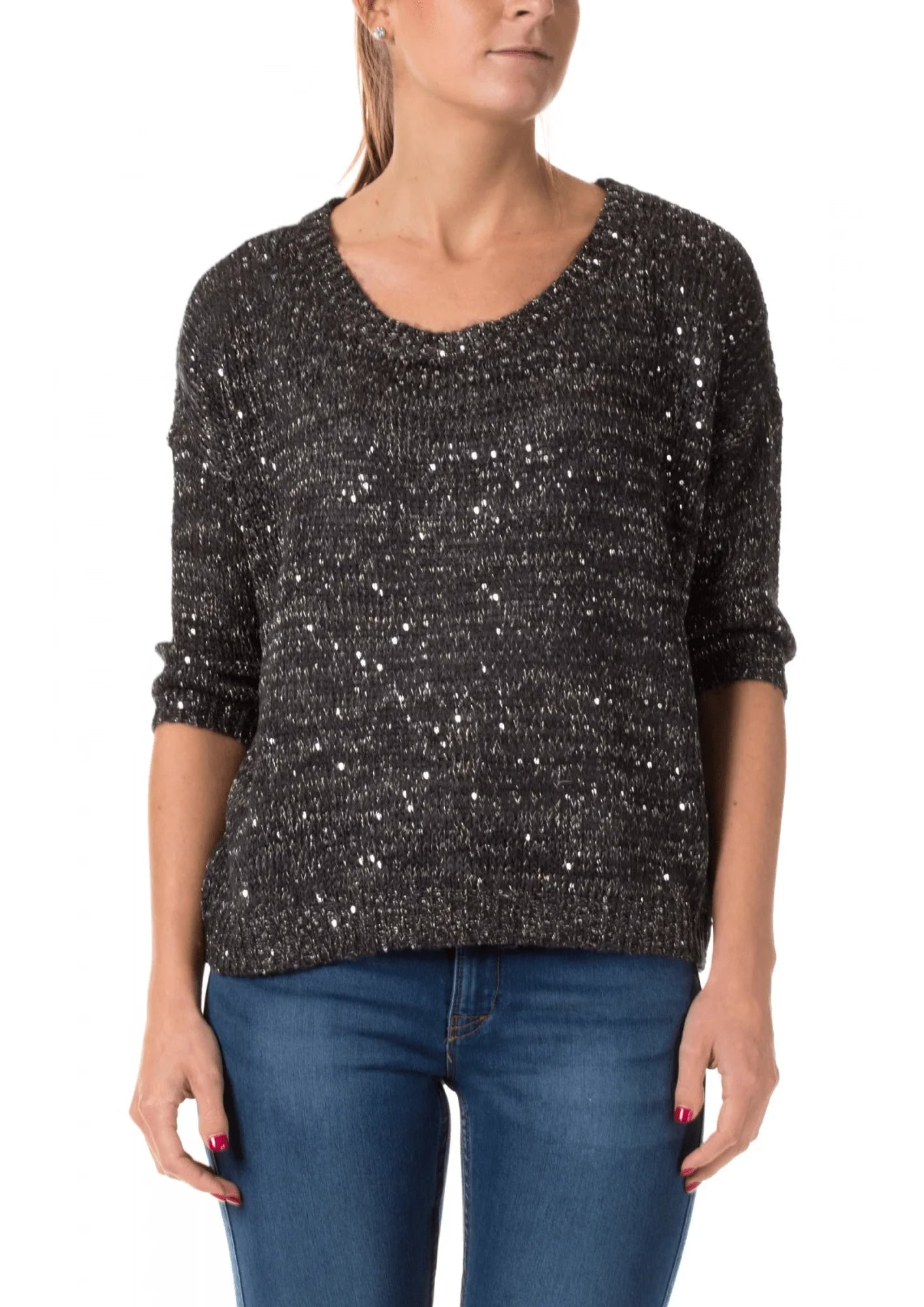 BLACK SEQUINED PULLOVER