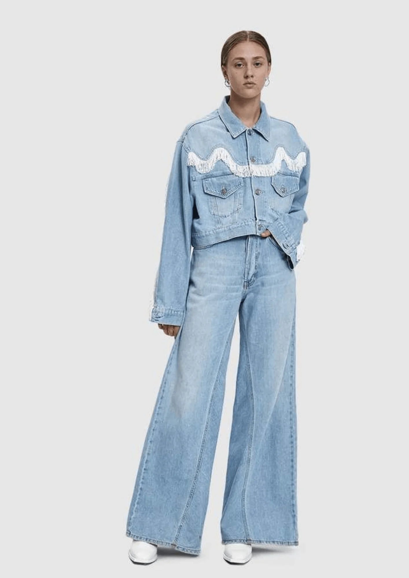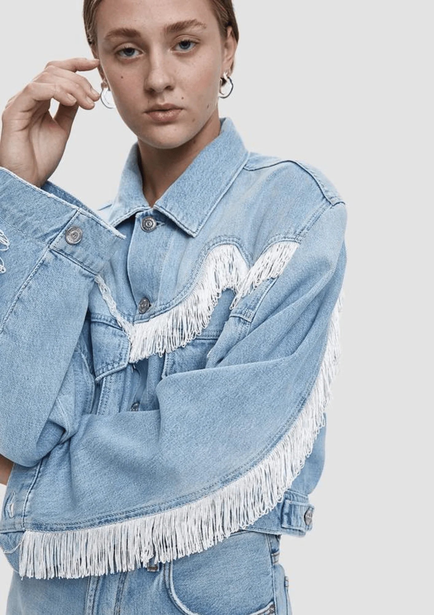 CROPPED FRINGED DENIM JACKET