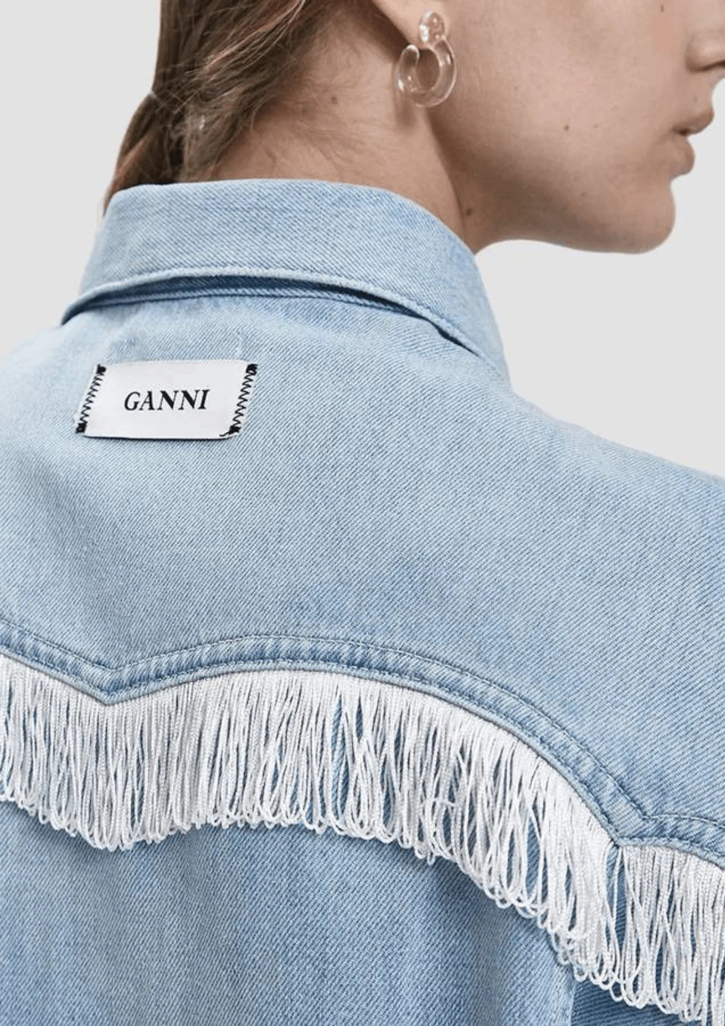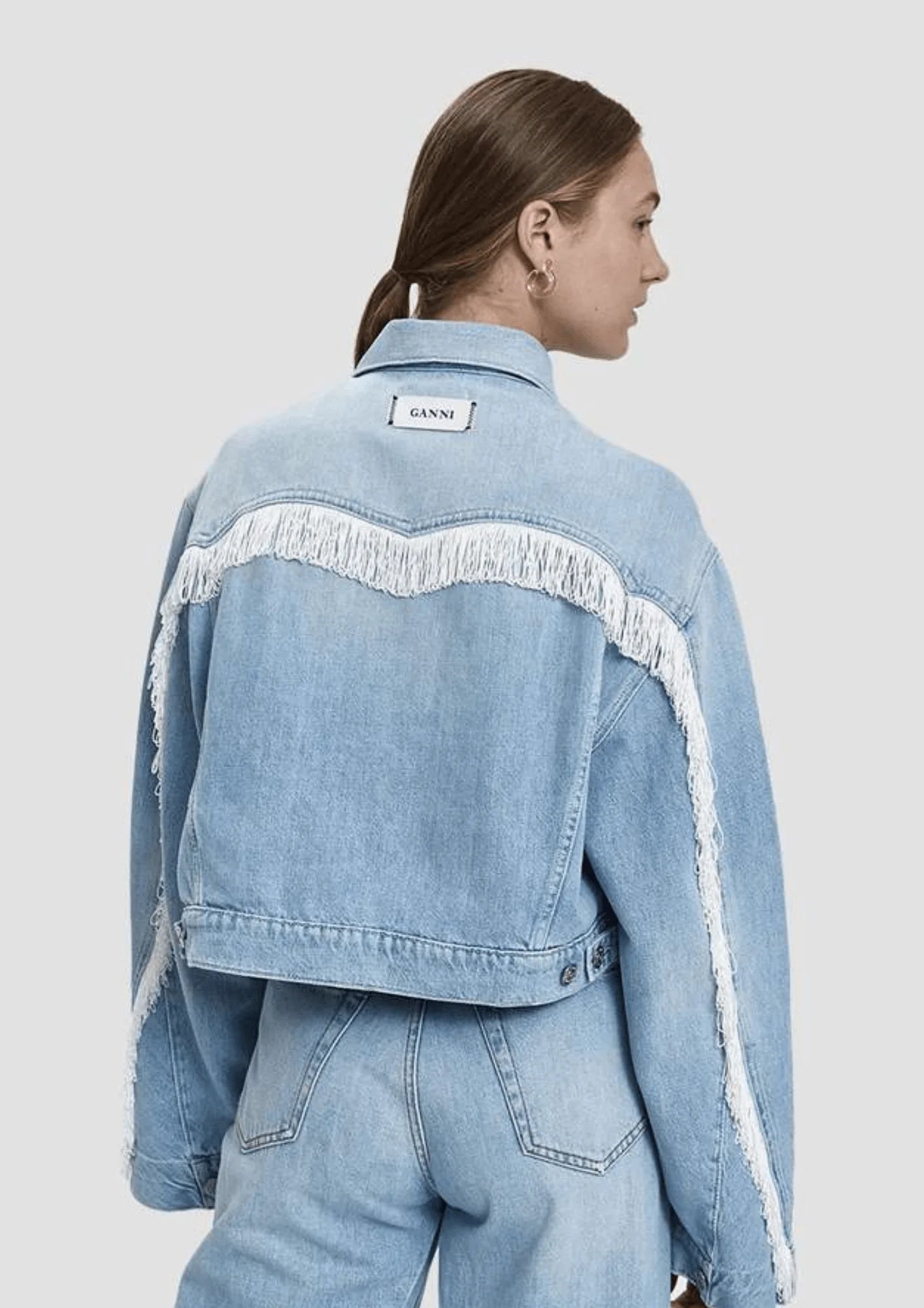 Cropped fringed denim jacket by Ganni