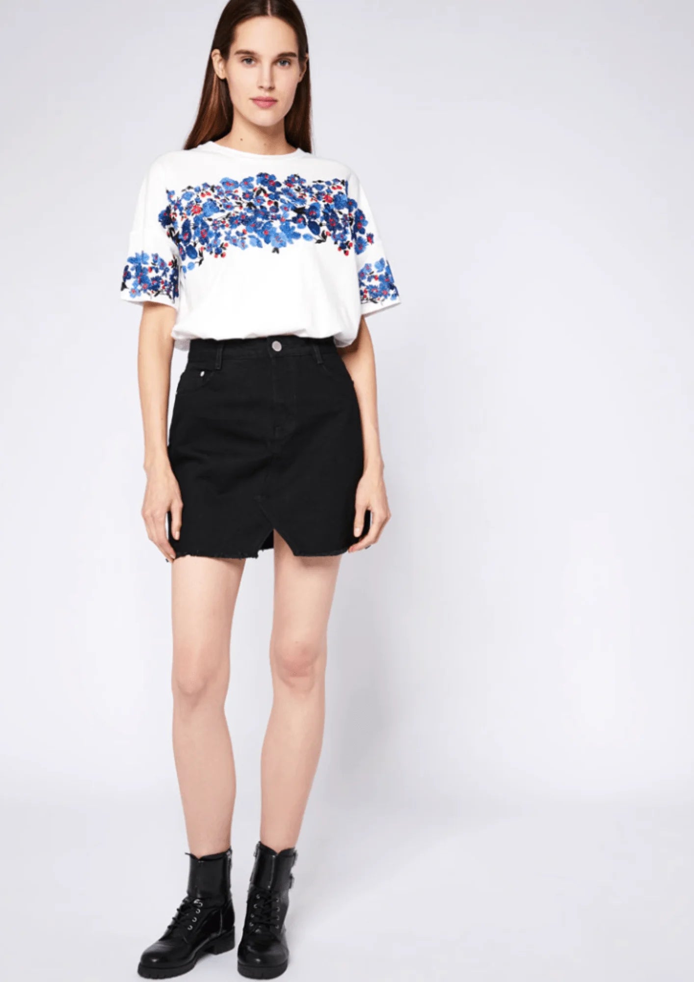 T-shirt avec une texture florale brodée