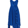 BLUE PLEATED DRESS WITH VOLANTS